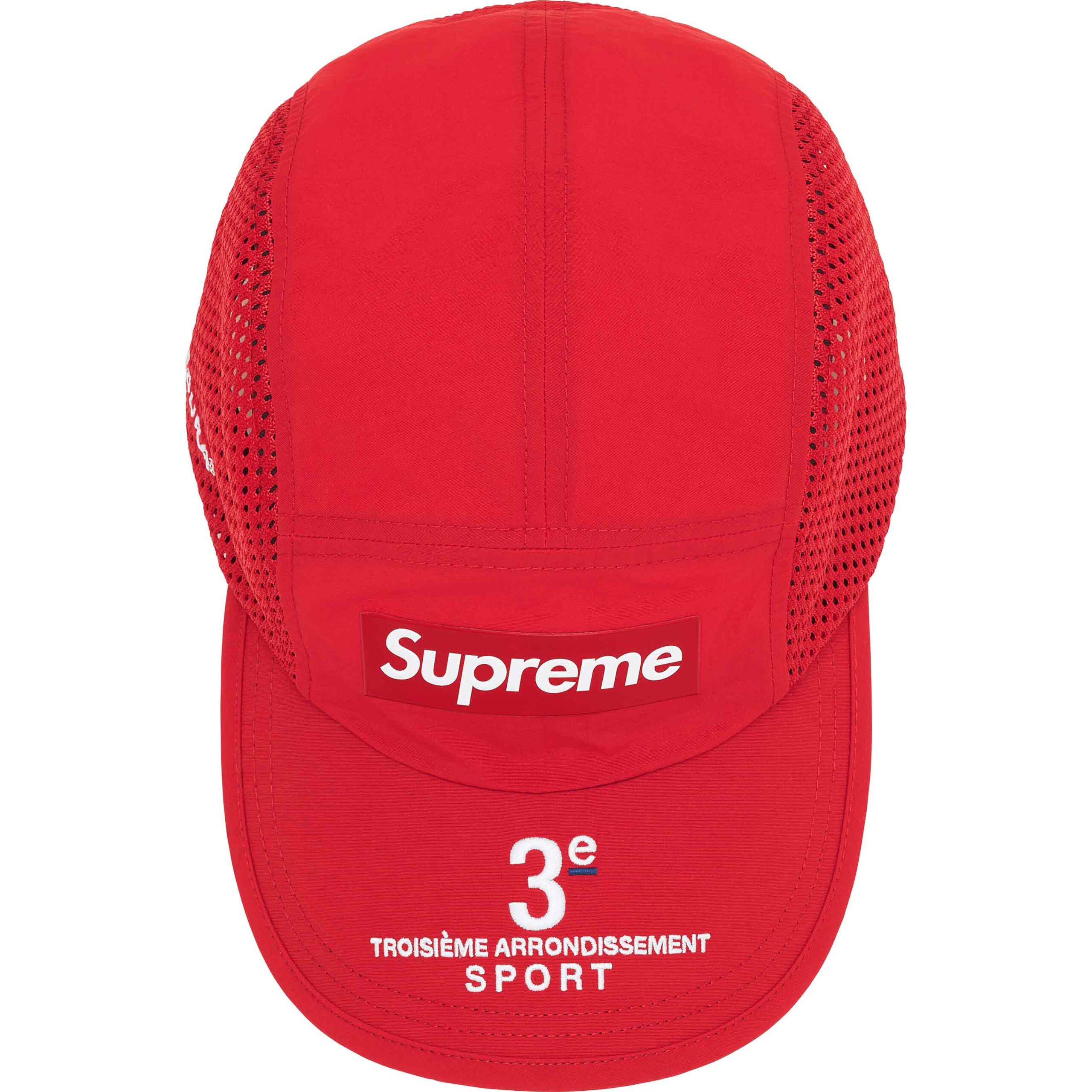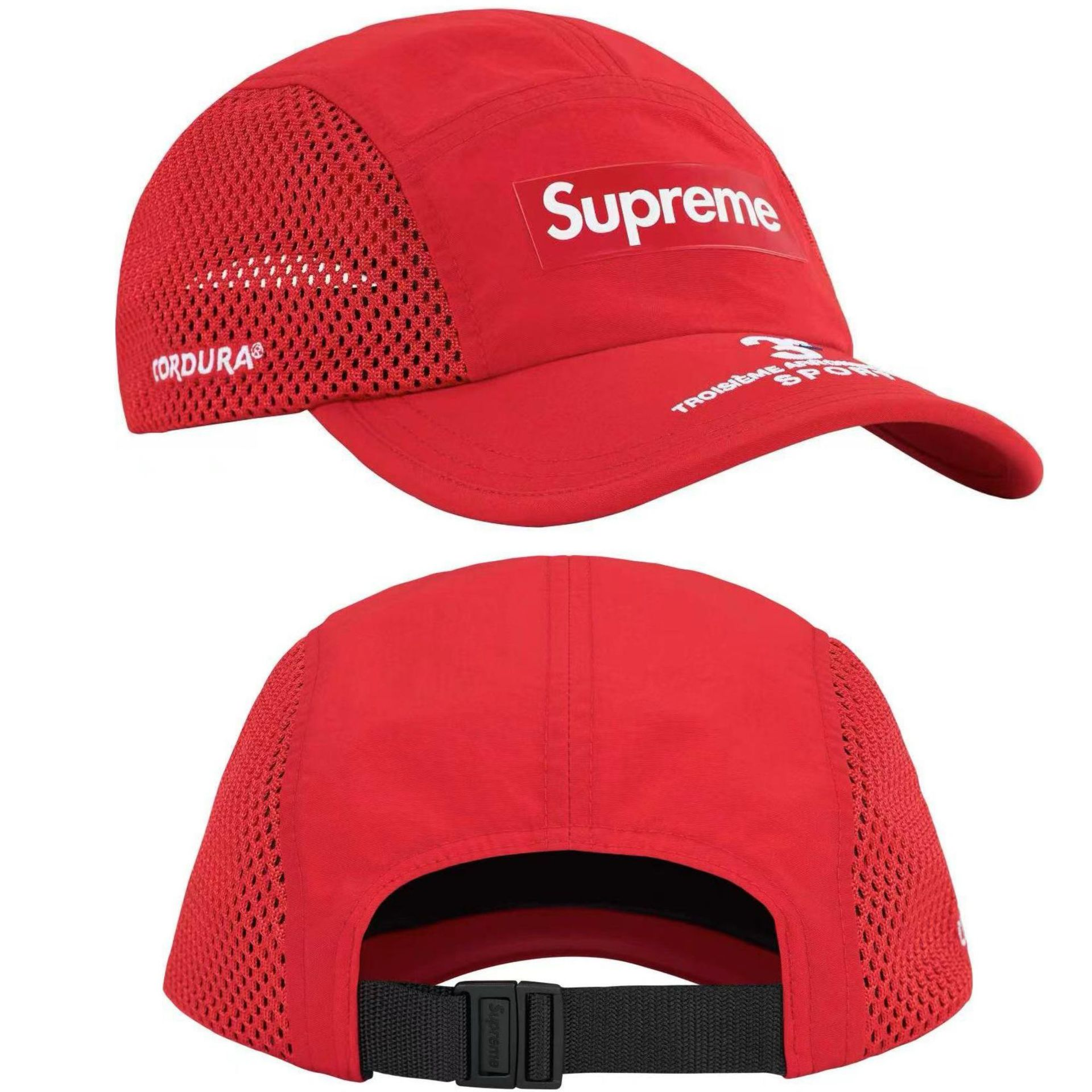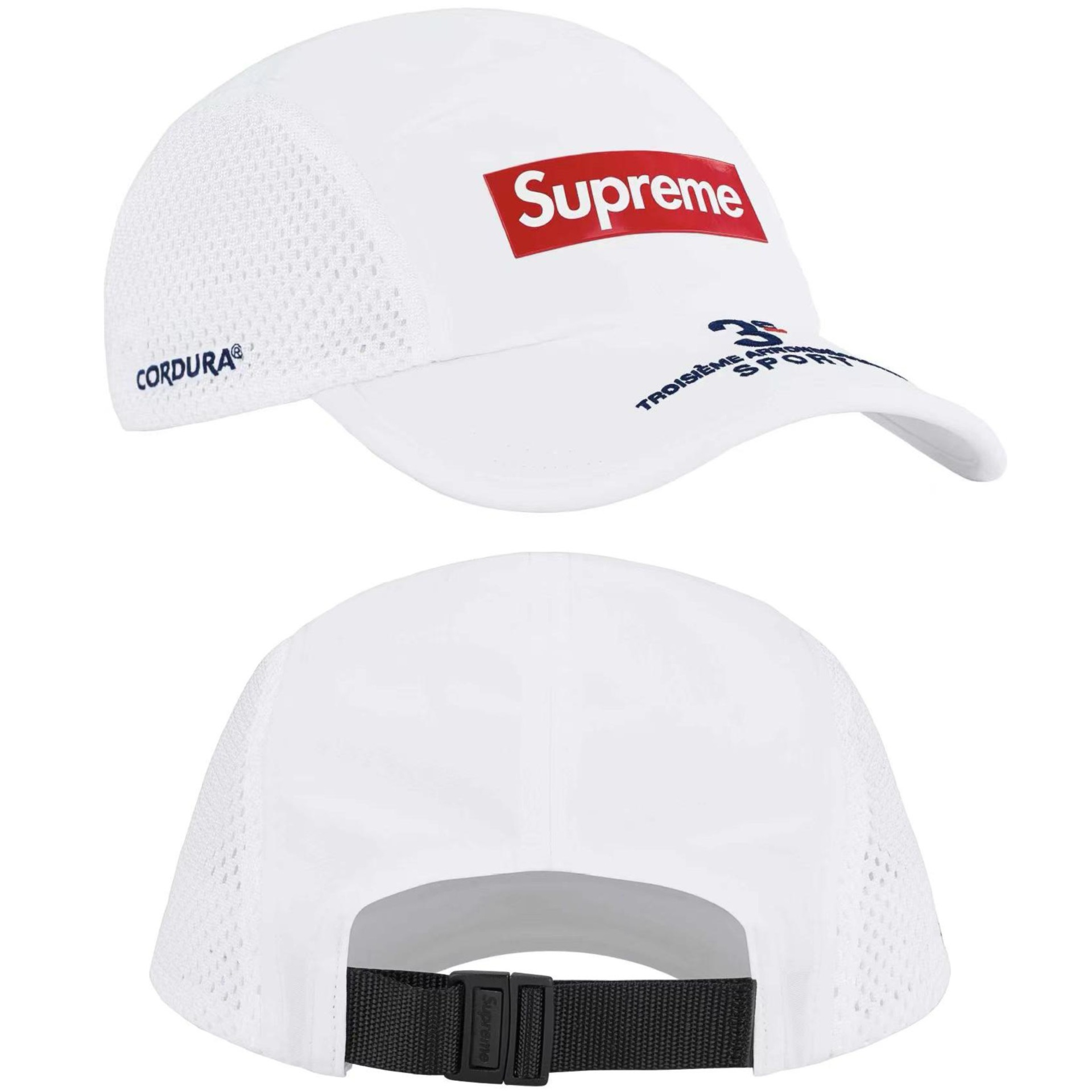 Boné de acampamento Supreme em colaboração com a Cordura®, em nylon com painéis laterais de malha e logotipo de borracha. Gráfico bordado na viseira e logotipo bordado na lateral.