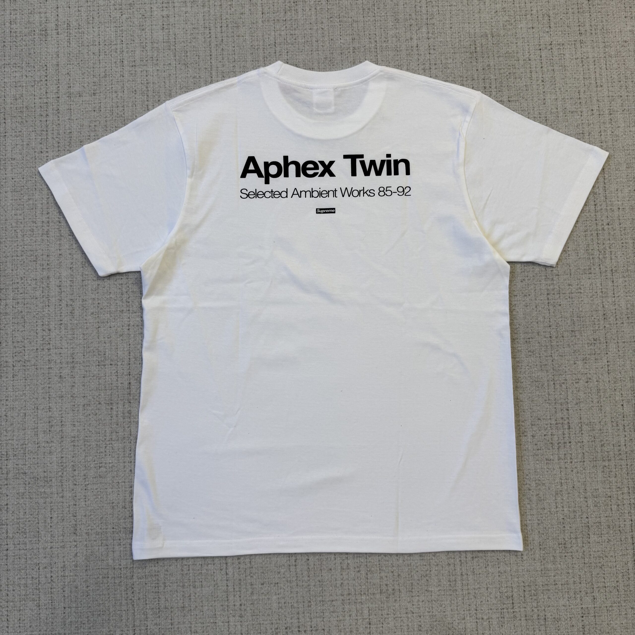 Uma colaboração altamente cobiçada que uniu a icônica marca de streetwear Supreme ao influente projeto de música eletrônica de Richard D. James, Aphex Twin, especificamente em torno de seu aclamado álbum de 1992, “Selected Ambient Works 85–92”. Esta camiseta é uma peça que ressoa tanto com os fãs de música eletrônica vanguardista quanto com os seguidores da moda urbana exclusiva.